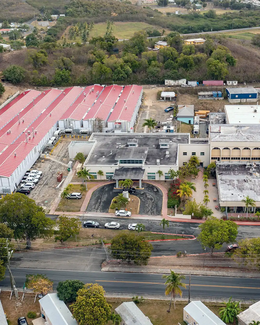 Following hurricane damage, a 55,000 square foot temporary hospital facility was constructed using a componentized metaspace building system to provide a projected seven-year occupancy life during renovation of the existing hospital. Built on adjacent property with a 16-foot grade differential, the facility required a custom podium structure to maintain a constant finished floor elevation. As Structural Engineer of Record, Innova developed the podium framing and structural system integration, ensuring rapid deployment, site adaptability, and full life-safety compliance under challenging site conditions.
